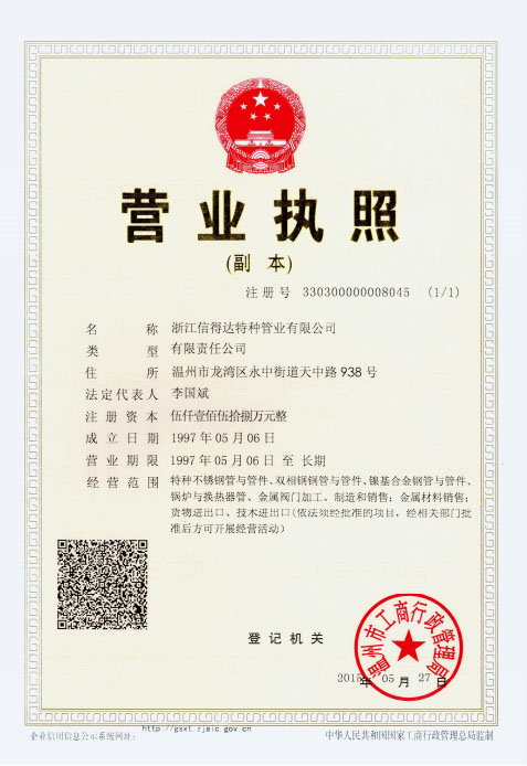 浙江信得達特種管業(yè)有限公司成立于1997年,占地面積28000平方米,注冊資金5158萬元,是國家高新技術(shù)企業(yè)、浙江省專精特新企業(yè),有4家控股公司,產(chǎn)品覆蓋了特種無縫換熱器管、高品質(zhì)不銹鋼管、鍛壓閥門制造商。